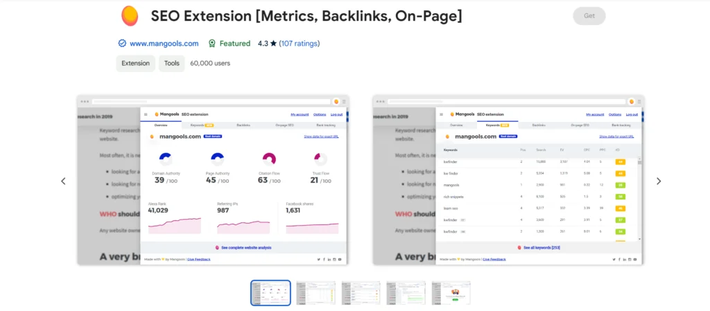 Browser extension is a feature that allows you to access the power of Mangools SEO tools directly in your Chrome or Firefox browser. In this Mangools review, We will show you how this feature can help you get the most important SEO metrics and insights on any website or URL without leaving your current tab.