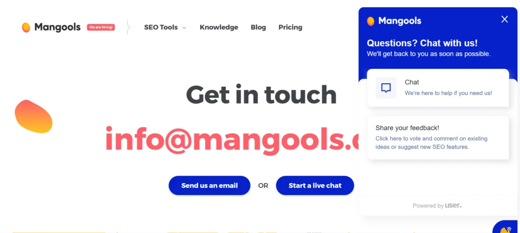 Some of the features that make Mangools’ customer support and resources outstanding are: